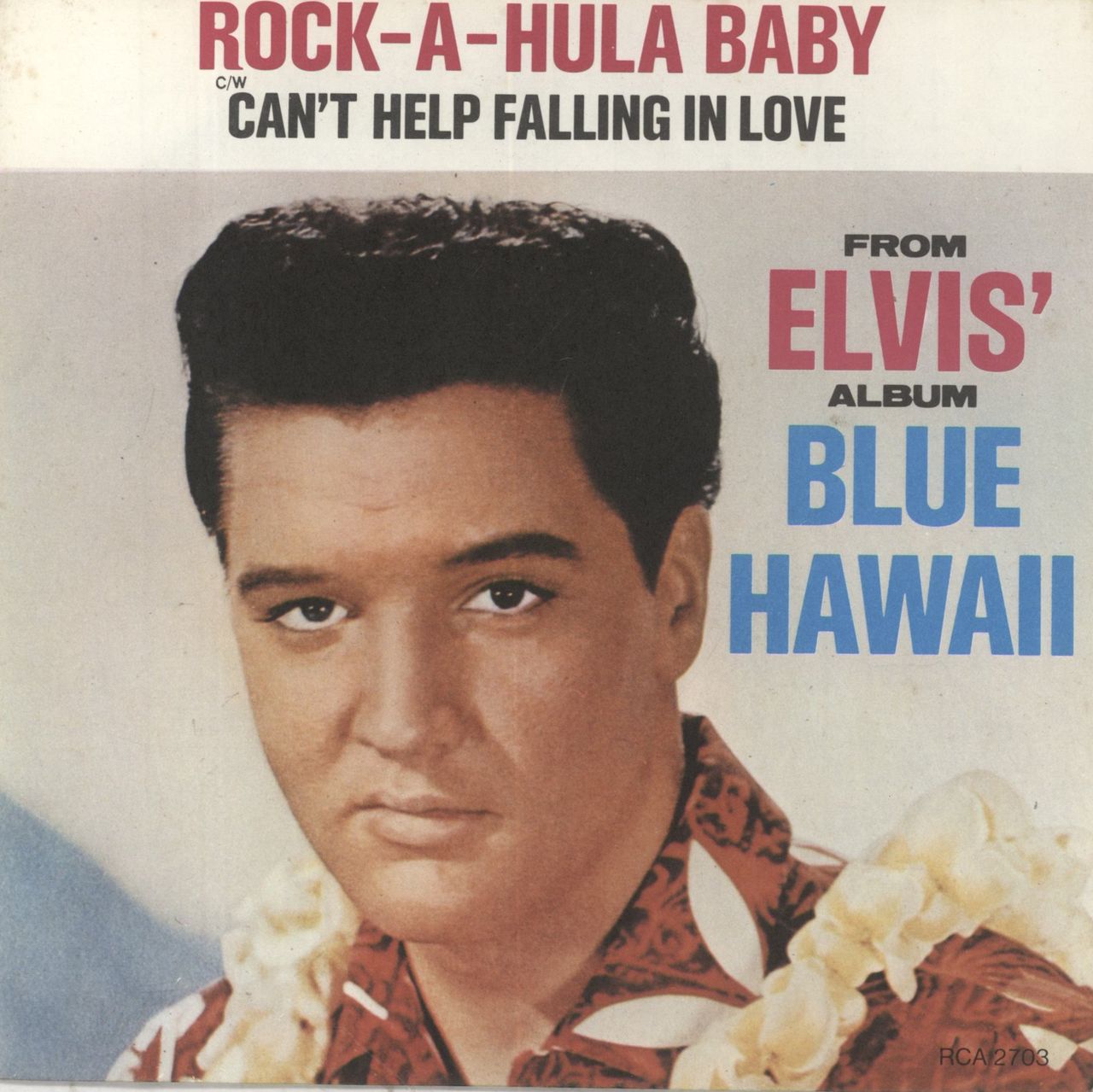 ELVIS PRESLEY Rock-A-Hula Baby (1977 Canadian issue of his 1961 7" vinyl single with a wide centre on the tan/golden RCA labels, also including Can't Help Falling In Love, housed in a thin card picture sleeve pressed in the UK by Delga PressLimited. The sleeve displays only a few light signs of age wear and the vinyl has only light signs of play RCA2703)