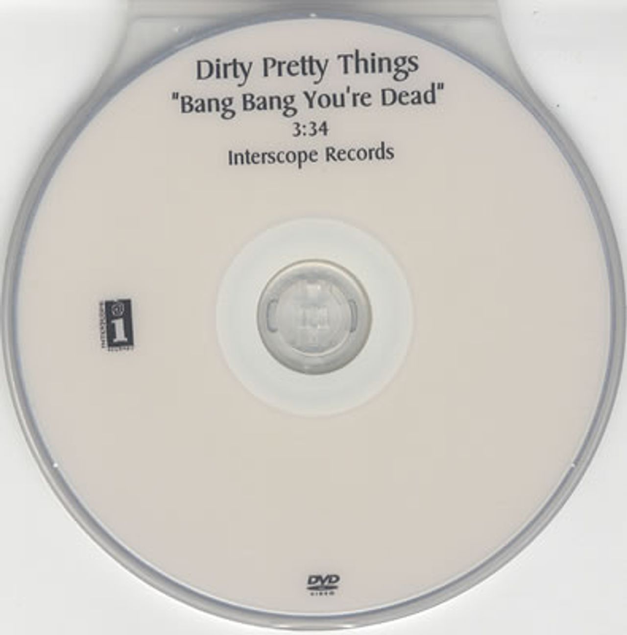 DIRTY PRETTY THINGS Bang Bang You're Dead (2006 US Interscope 1-track promotional NTSC DVD-R acetate, running time 3:34, custom printed disc in clamshell style PVC case)