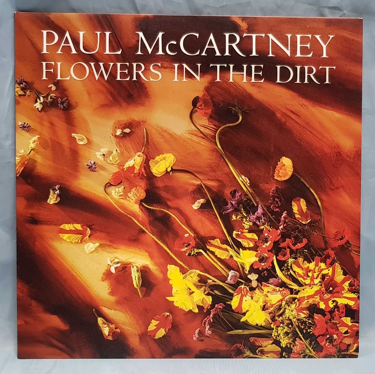 PAUL MCCARTNEY AND WINGS Flowers In The Dirt (Rare 1989 UK Parlophone press kit for the album relase, featuring the full 13-track CD album, 4-page McCartney biography, 9-page press release and three 8" x 10" black & white publicity photographs, all housed within a 11" square gatefold picture sleeve featuring the album artwork)