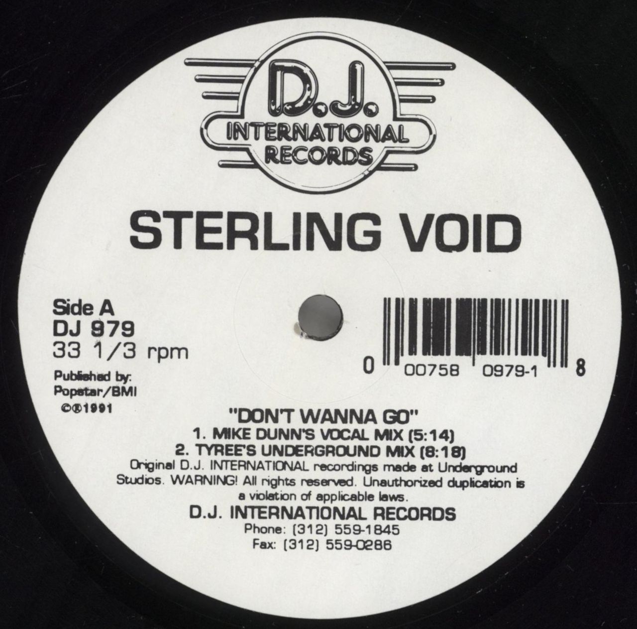 STERLING VOID Don't Wanna Go (1991 US 4-track 12" vinyl single, includes Mike Dunn's Vocal Mix, Tyree's Underground Mix, Rock's Mix and Mike Dunn's For Fun Mix, plain die-cut sleeve DJ979)