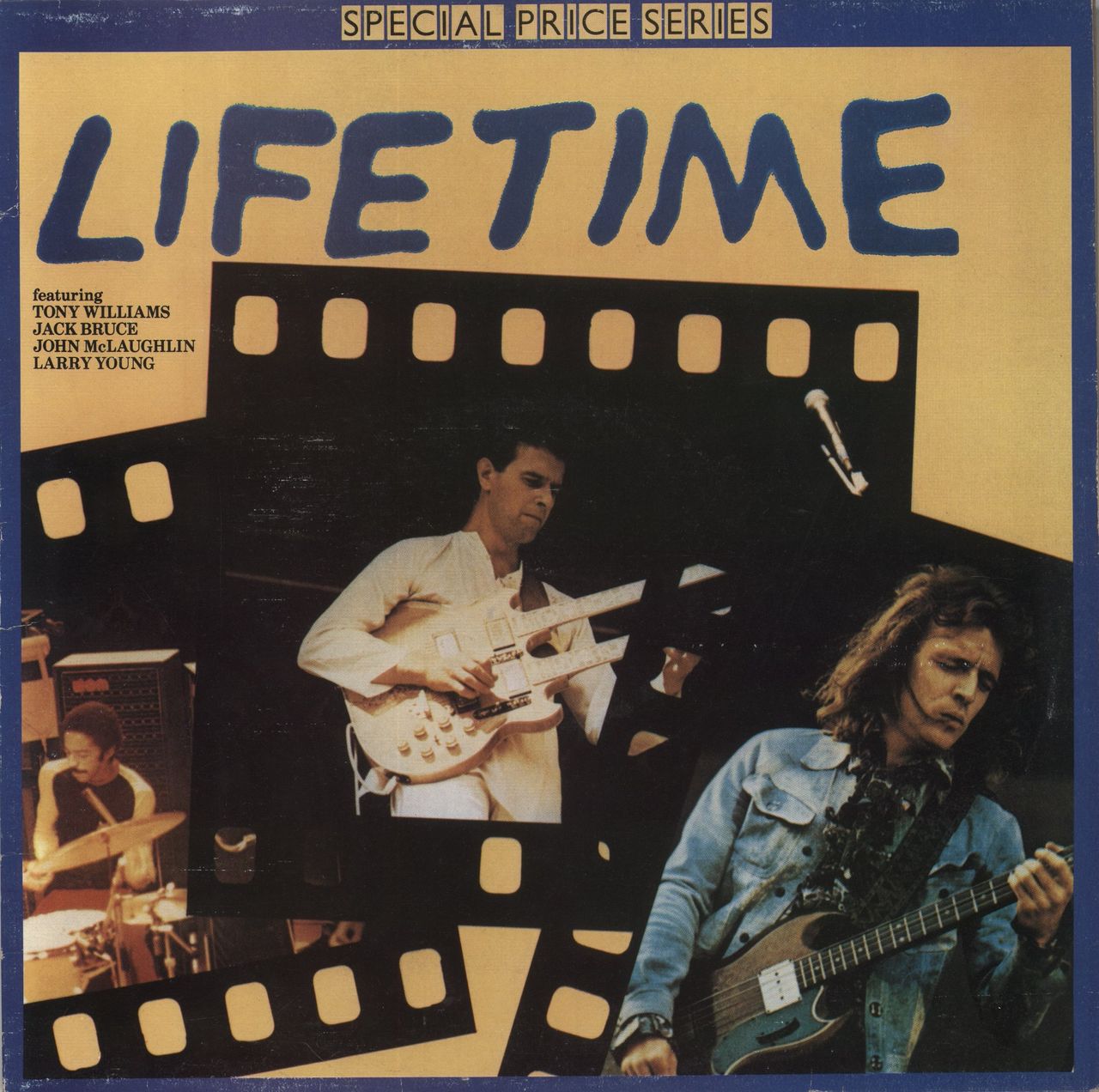 LIFETIME Lifetime (1981 UK 8-track vinyl LP compilation starring Tony Williams, Larry Young, John McLaughlin & Jack Bruce. Originally released in 1975. Reissued as part of the Special Price Series. Picture sleeve. The sleeve has some edgewear and scuffing & the vinyl looks barely played)