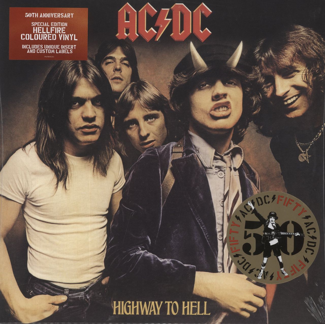 AC/DC Highway To Hell (50th Anniversary 2024 UK/EU limited edition 10-track LP pressed on 'Hellfire' Red & Orange Vinyl with AC/DC FIFTY commemorative centre labels and an artwork print. Originally released in 1979 this was their final album featuring lead singer Bon Scott. Picture sleeve with original cover artwork, hype stickers & factory sealed)