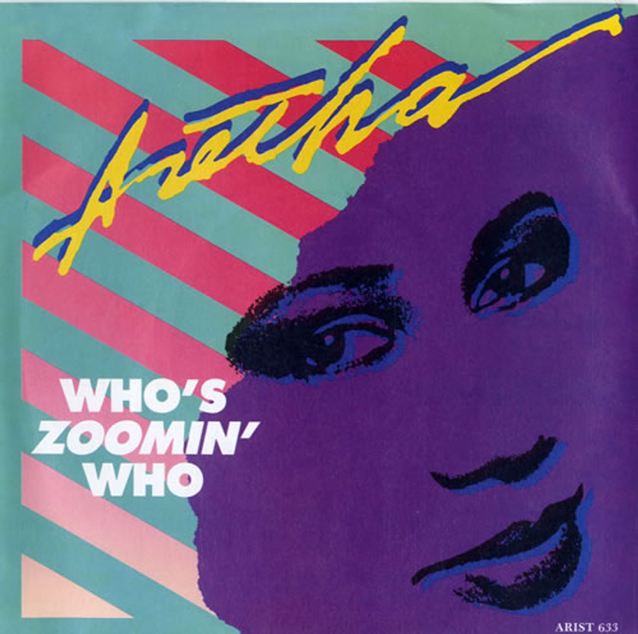 ARETHA FRANKLIN Who's Zoomin' Who (1985 UK blue injection moulded 7" vinyl single, also including Sweet Bitter Love, picture sleeve ARIST633)