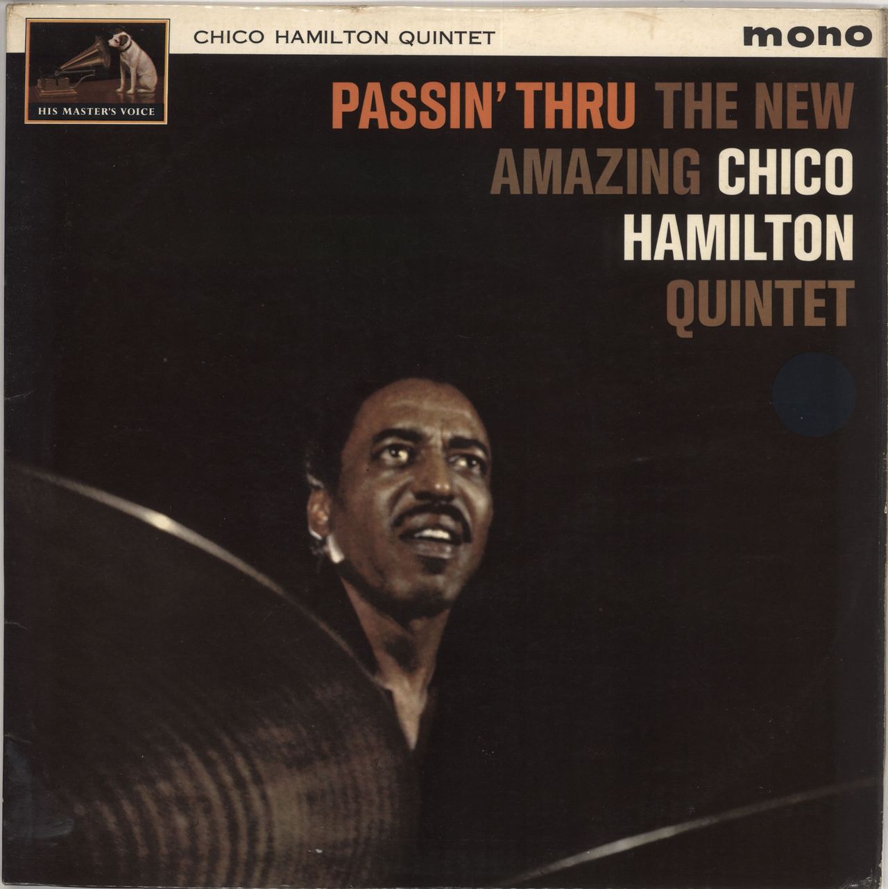 CHICO HAMILTON Passin' Thru (1963 UK 6-track mono LP on the black & red 'nipper stamp' label, also starring Charles Lloyd, George Bohanon, Gabor Szabo & Al Stinson, front laminated flipback picture sleeve. The sleeve shows just light shelfwearwith a little faint discolouring & the vinyl is nice & clean & in Excellent condition with minor evidence of play only CLP1652)