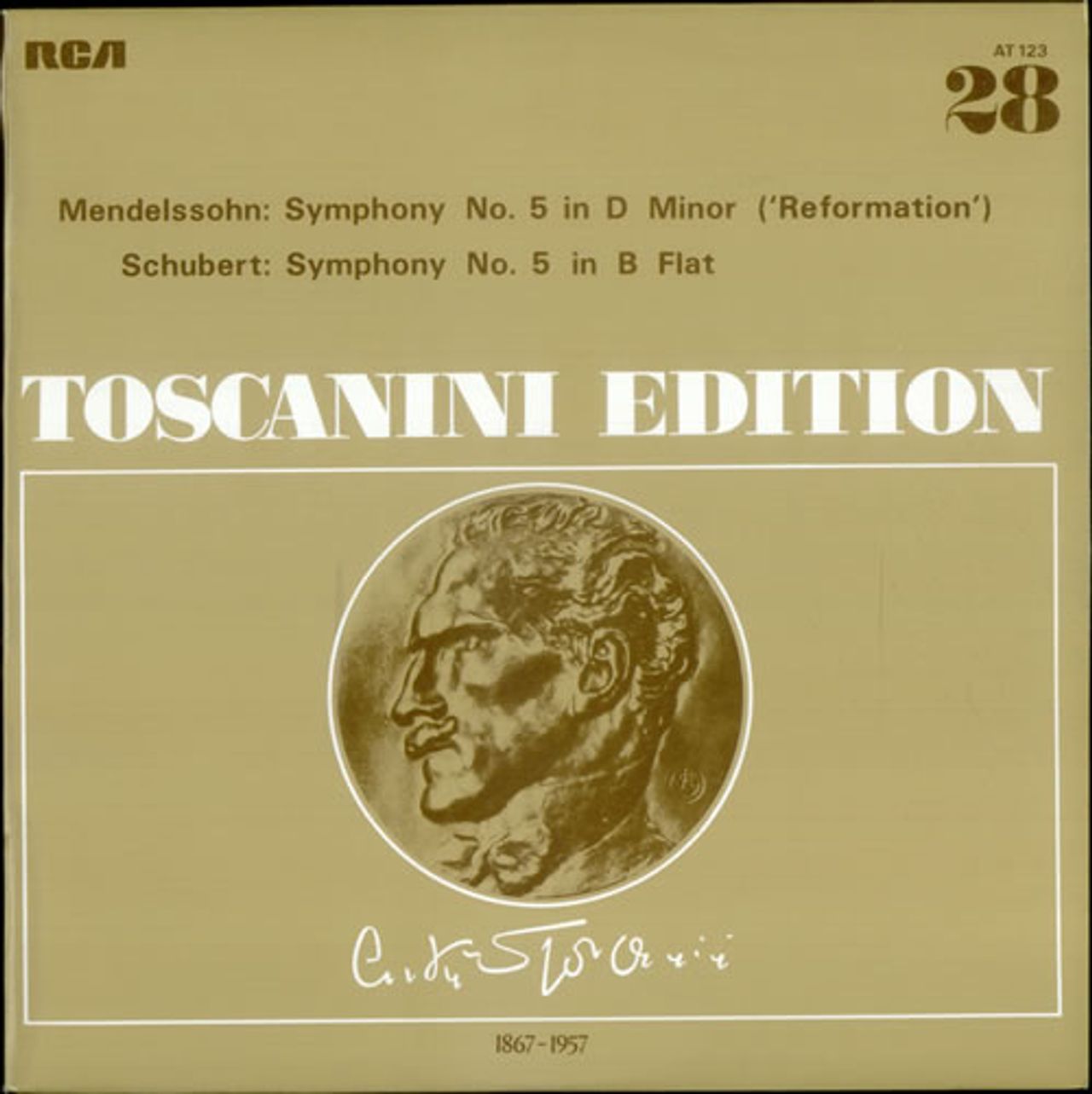 MENDELSSOHN Symphony No. 5 in D minor / Symphony No. 5 in B-flat (1972 UK pink RCA Victorola label mono vinyl LP. Performed by the NBC orchestra conducted by Arturo Toscanini. Front and back laminated picture sleeve AT123)