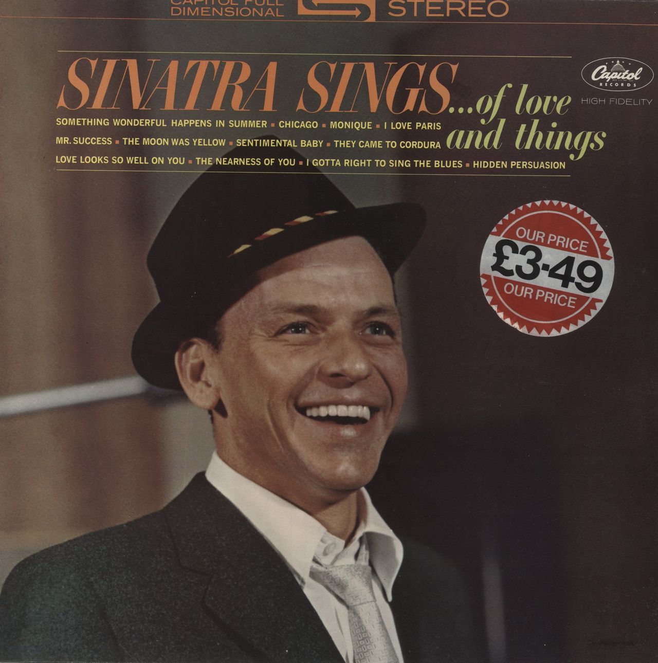 FRANK SINATRA Sinatra Sings... Of Love & Things! (1984 UK digitally remastered issue of the 1962 12-track LP, all in stereo except for two mono recordings, housed in a glossy picture sleeve replicating the original album's artwork with then new album notes by Alan Dell. The sleeve shows minimal wear with vintage price sticker still ettached & the vinyl looks barely played ED2601781)