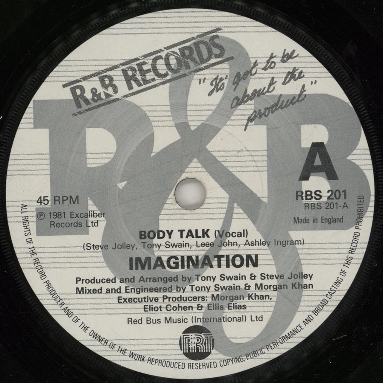 IMAGINATION Body Talk (1981 UK solid centre 7" vinyl single, with the soul combo delivering one of their silkiest hits and radio favourites, also including the Instrumental Version of the title track, plain black die-cut paper sleeve RBS201)