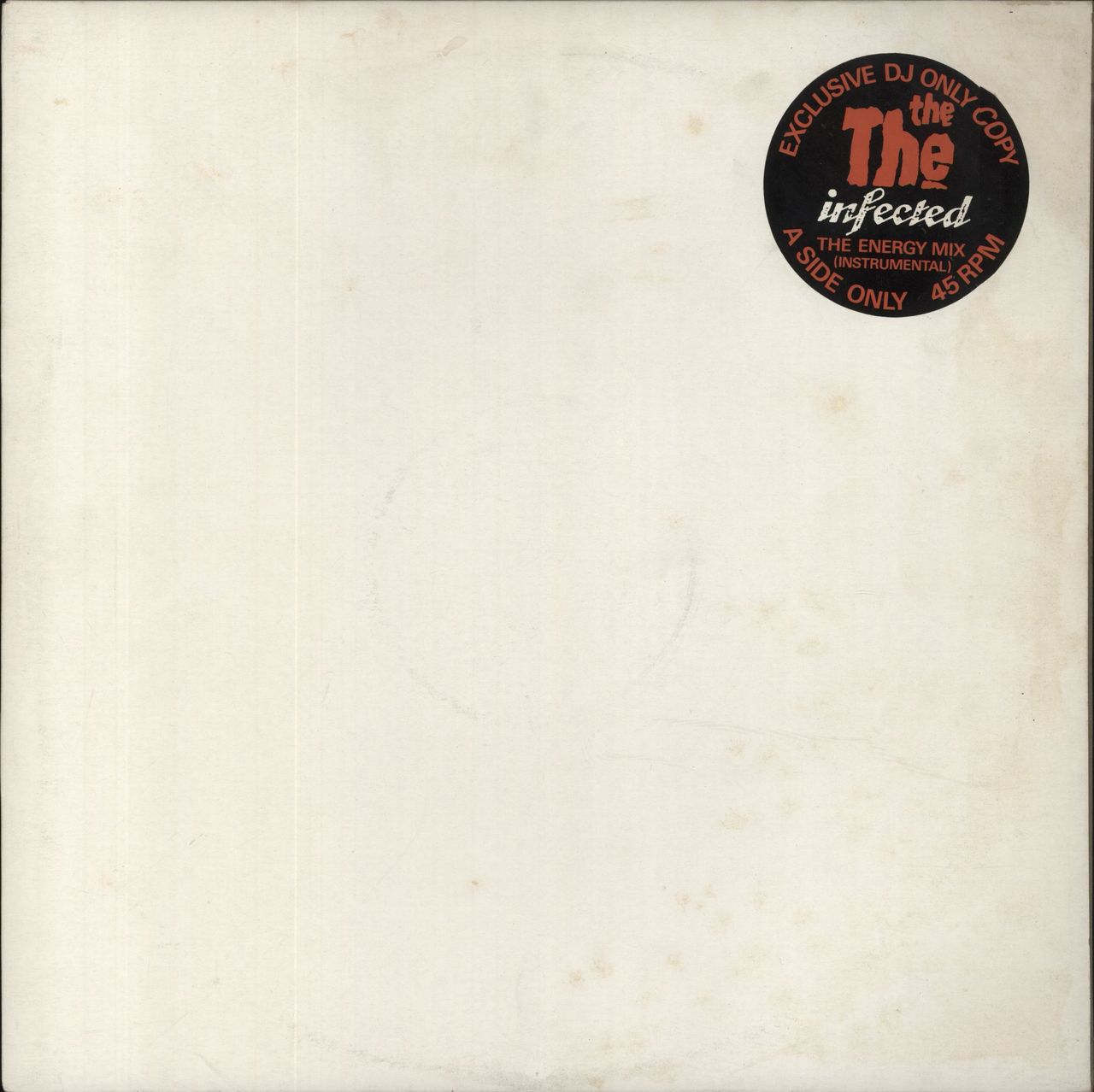 THE THE Infected (1986 UK Exclusive DJ promo white label one sided vinyl 12" for the single release, featuring the Energy Mix, housed in a plain card sleeve with a custom sticker attached. The sleeve has just light general wear and the vinyl has minimal signs of play TRUTHJ3)