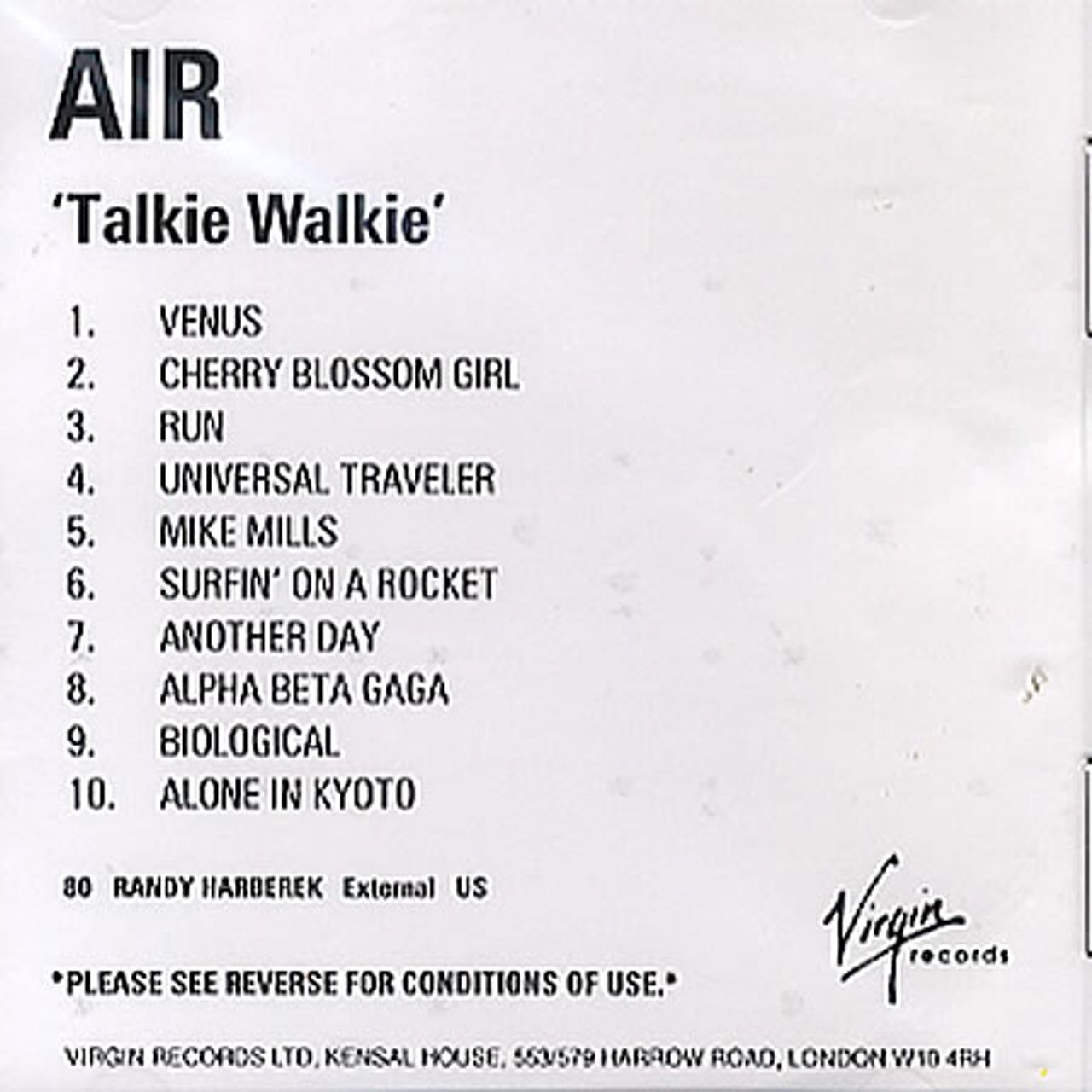 AIR Talkie Walkie (Official 2004 US Virgin label 10-track advance