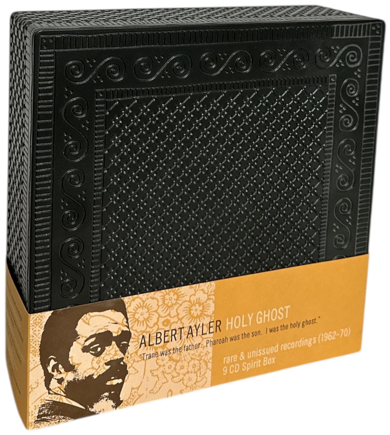 ALBERT AYLER Holy Ghost: Rare & Unissued Recordings [1962-70] (Limited Edition 2004 US TEN CD Box Set, the first comprehensive set constructing a monument in sound to Ayler, including his previously unheard first & last recordings bookending sessions from every stage of his career. The bonus disc features Ayler as a member of the U.S Army Band & is housed in its own custom printed wallet. All discs are housed in a lavish 'Spirit Box' cast from the handcarved original, complete with a 208-page full colour hardbound book containing extensive essays, previously unpublished photos & family memorabilia, artist testimonials & an exhaustive chronology of his performance activities. Comes complete with a picture insert of Ayler with saxophone from his youth, a photostat of a handwritten note from a Copenhagen hotel, a reprinted copy of a Slugs flyer which includes a listing for a week of Ayler's quintet, a reprinted 1965 pamphlet by the late poet Paul Haines entitled Ayler-Peacock-Murray-You & The Night & The Music, a reprinted newsletter from 1969 by Jihad Productions with excerpts about Ayler plus a dried flower! Complete with the outer obi-style strip, the packaging is Excellent with minimal shelf wear & the discs are in Excellent condition with very little play - An incredible set! RVN213)