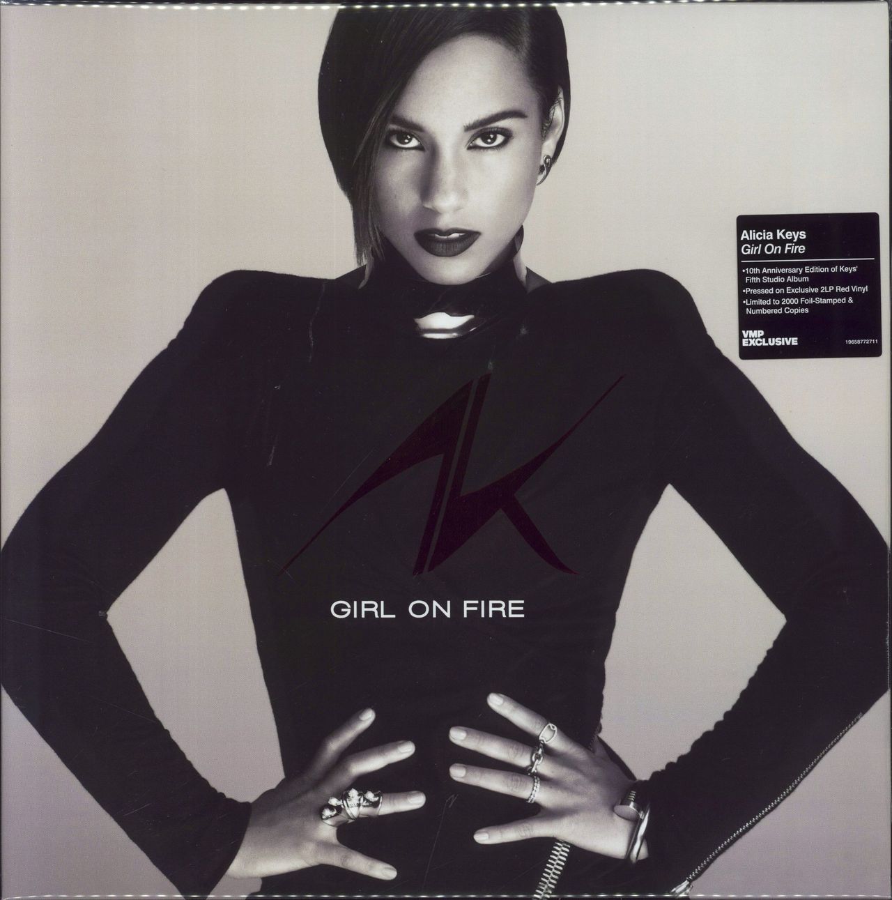 ALICIA KEYS Girl On Fire (2023 US 'Vinyl Me Please' exclusive 10th Anniversary limited numbered edition 13-track LP pressed on Red Vinyl - her fifth studio album. Housed in a wide-spined single pocket picture sleeve with foil stamped artist logo and numbered on the reverse - in a hype stickered resealable bag)