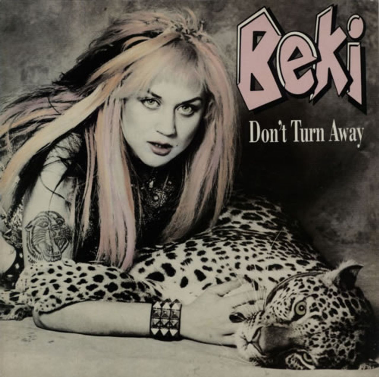 BEKI BONDAGE Don't Turn Away (1985 UK Communique white label test pressing for the 3-track 12" viny single featuring the Disco Bastard Mix plus Dolphins [Metal Mix] and Hard To Get, regular picture sleeve 12LITTLE2)