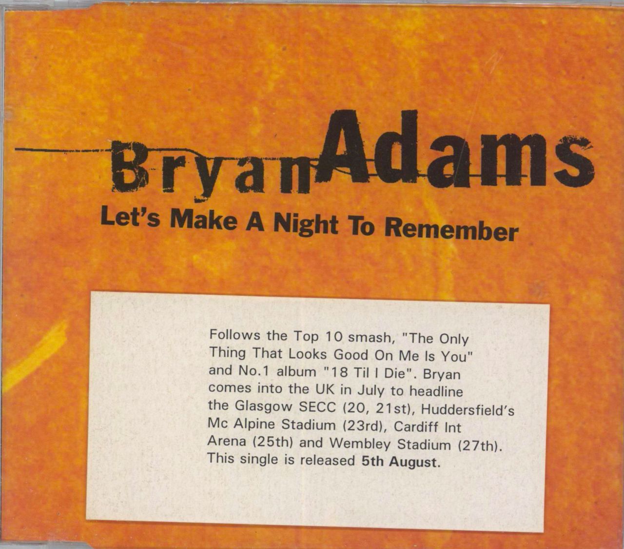 Bryan Adams Let's Make A Night To Remember UK Promo CD single