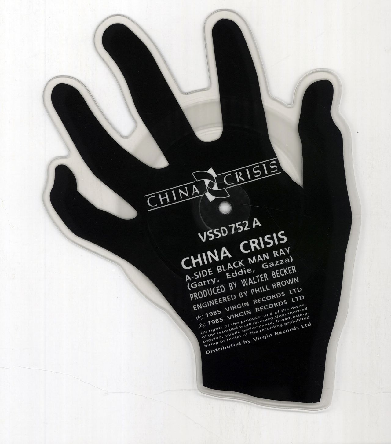 CHINA CRISIS Black Man Ray (1985 UK limited edition PAIR of Hand-Shaped Picture Discs, also including Animalistic, issued together within a custom-stickered gatefold clear PVC sleeve with vintage hype sticker. The discs show barely any play VSSD752)