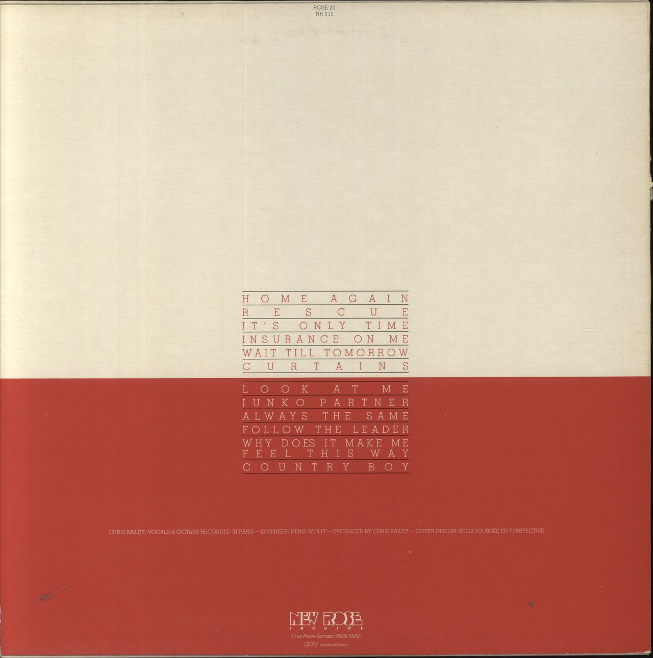 CHRIS BAILEY Casablanca (1983 French 12-track vinyl LP with pink labels. Debut solo album from the Australian singer, songwriter, guitarist, record producer and co-founder of The Saints. Picture sleeve. The sleeve shows a small split to the spine and the vinyl shows only a couple of very faint cosmetic paper marks and minimal signs of play ROSE20)