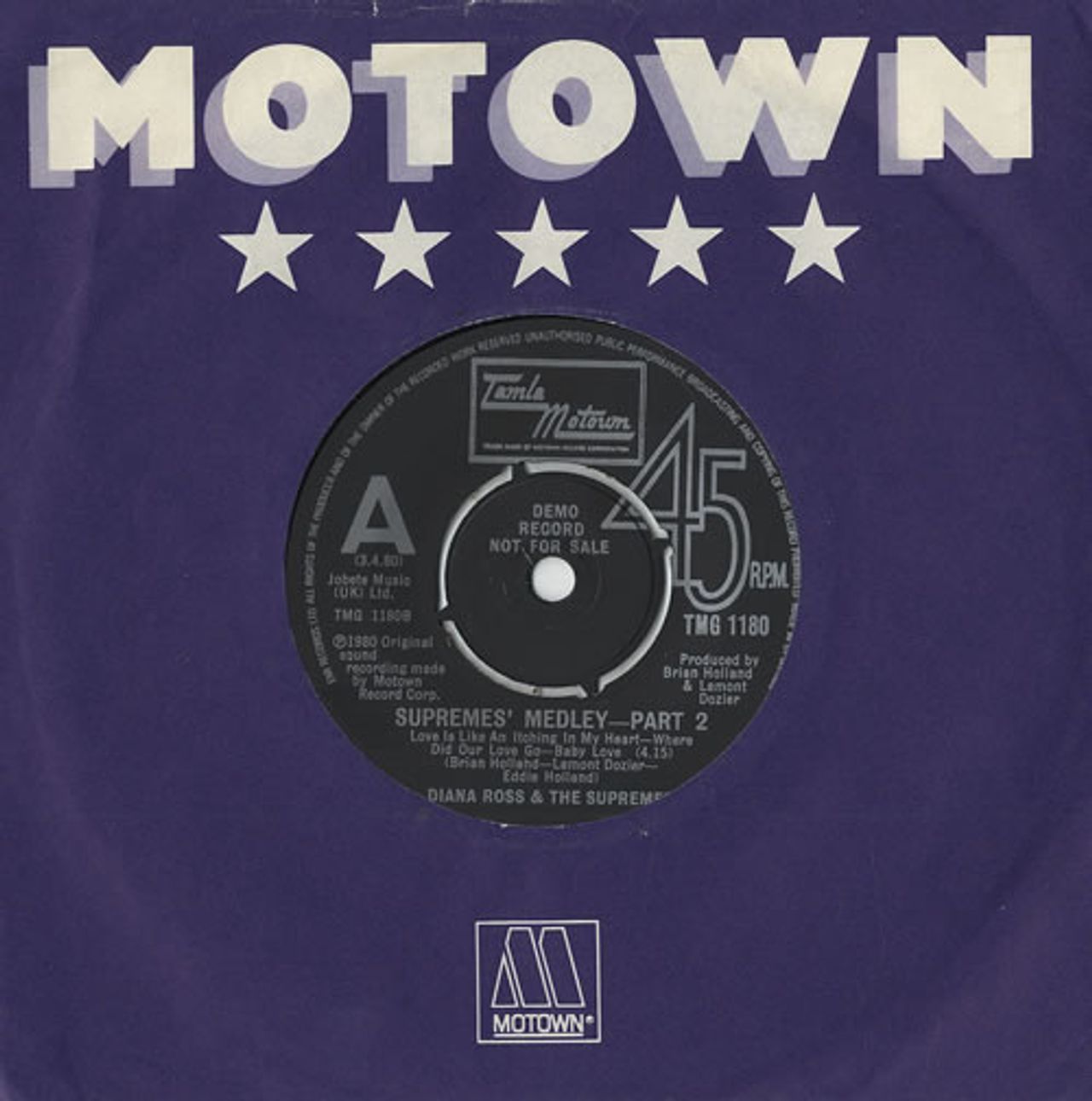DIANA ROSS & THE SUPREMES Supremes Medley (Scarce 1980 UK 'A' label demonstration vinyl 7", featuring Parts One & Two of a huge Supremes medley, Motown die cut paper sleeve TMG1180)