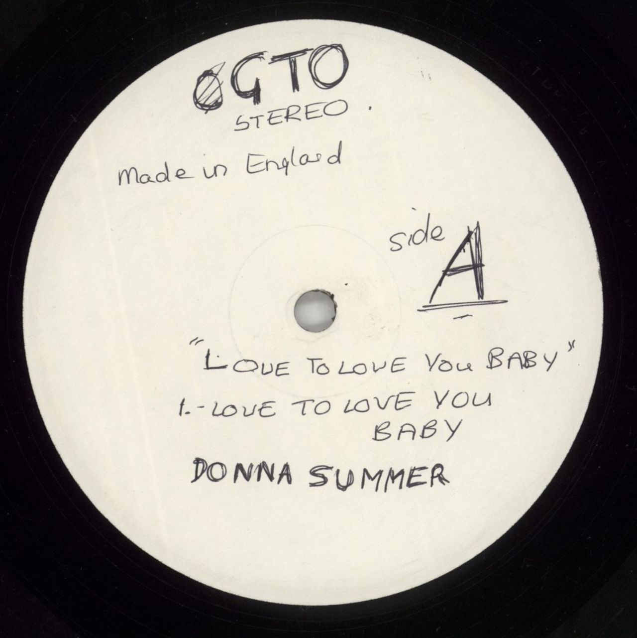 DONNA SUMMER Love To Love You Baby (Test pressing for the 1975 UK 6-track LP on hand-annotated white labels, including the epic side-long title track with Giorgio Moroder, a disco classic, hand-annotated die-cut innersleeve. This copy was annotated and stored by an ex-employee, the vinyl shows little sign of play leaving it a nice Excellent GTLP008)