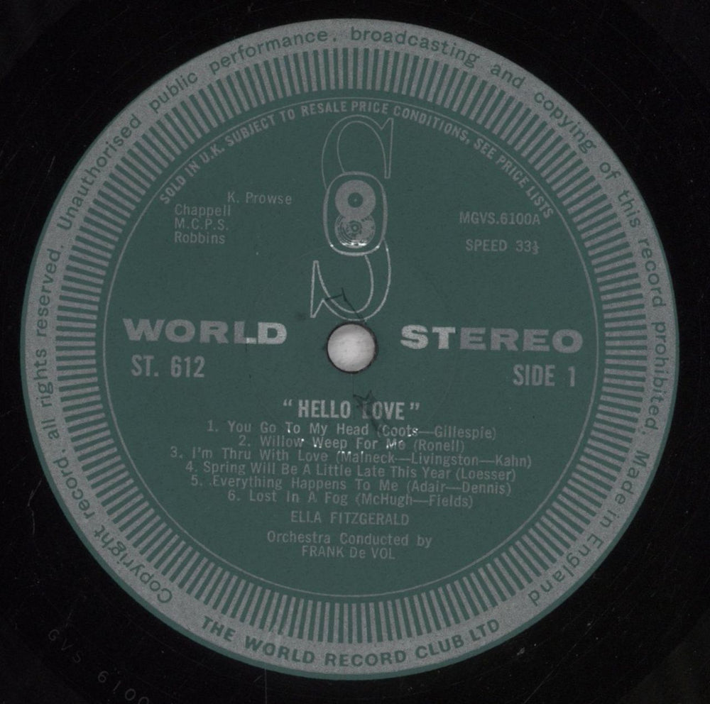 Ella Fitzgerald Hello Love UK Vinyl LP