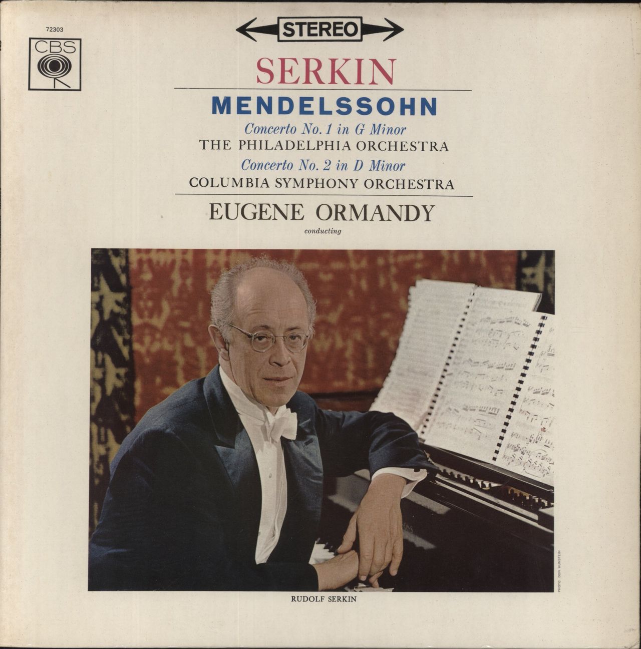 SERKIN with THE PHILADELPHIA ORCHESTRA conducted by EUGENE ORMANDY Mendelssohn: Concerto No. 1 In G Minor / Concerto No. 2 In D Minor (1966 UK 6-track stereo vinyl LP, front laminated flipback picture sleeve. The sleeve shows light wear and the vinyl appears barely played)