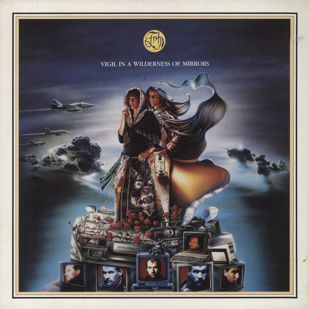 FISH Vigil In A Wilderness Of Mirrors (Rare 1990 UK advance promotional 8-track vinyl LP, housed in a glossy gatefold picture sleeve with a sample stickered glossy gatefold picture sleeve with 'Manufactures Property' not for sale sticker attached to the back. This example includes a promotional press pack comprising of a six page press release about the album release, tour and lots more, along with four 10" x 8" black & white publicity photographs, housed in a custom logo printedcard folder!)