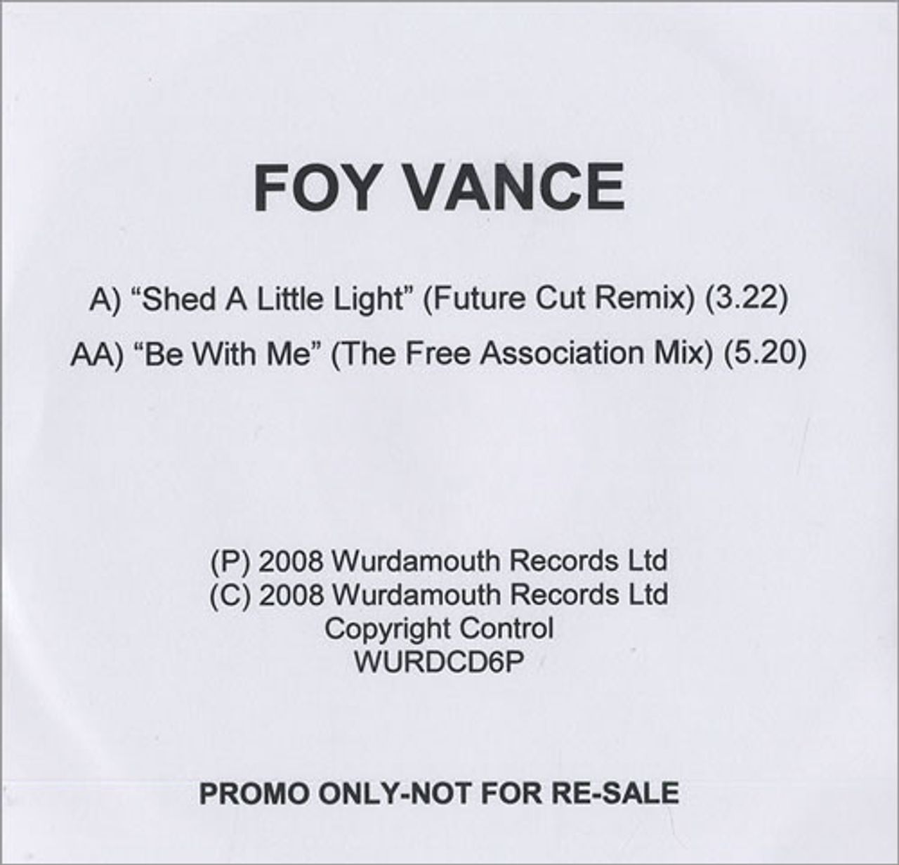 FOY VANCE Shed A Little Light - Remix (2008 UK Wurdamouth label
