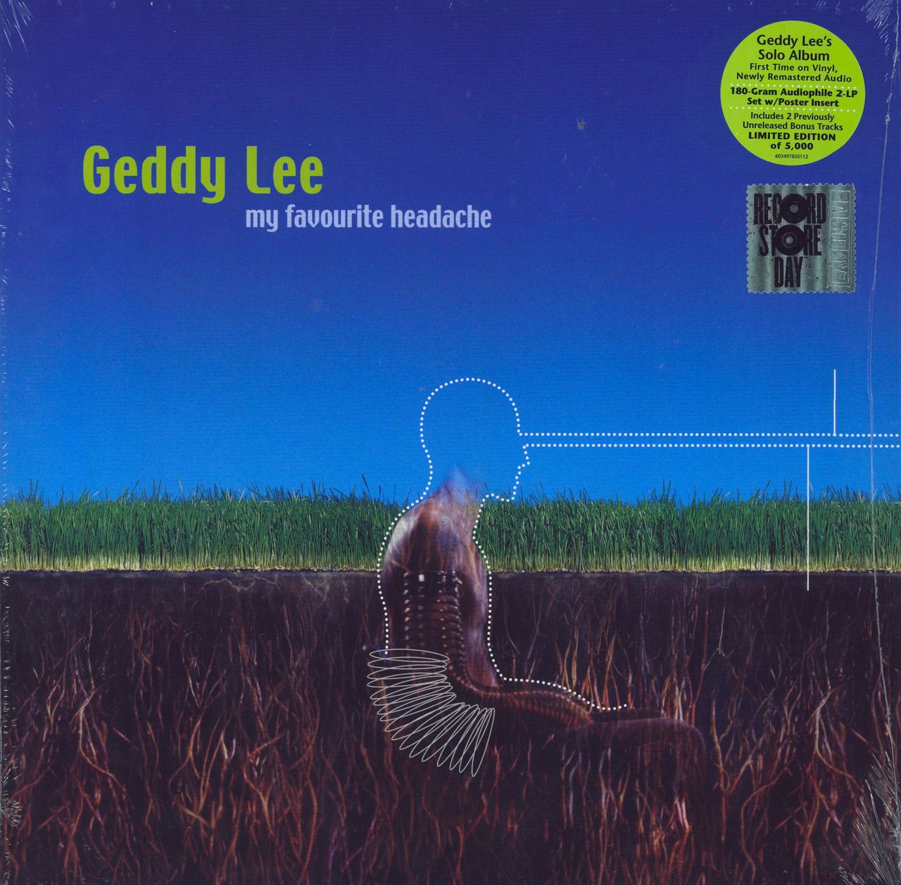 GEDDY LEE My Favourite Headache -180g (2019 EU manufactured RSD Limited Edition 13-track double LP pressed on audiophile quality 180g vinyl, hype stickered picture sleeve with printed inners and poster. First time on vinyl for this soloalbum from the Rush frontman originally released in 2000, now includes two bonus tracks. The sleeve is still in its open shrinkwrap and is Near Mint, the inners have two smallseam splits and grade Excellent, the vinyl is Near Mint. Limited tojust 5000 copies worldwide)