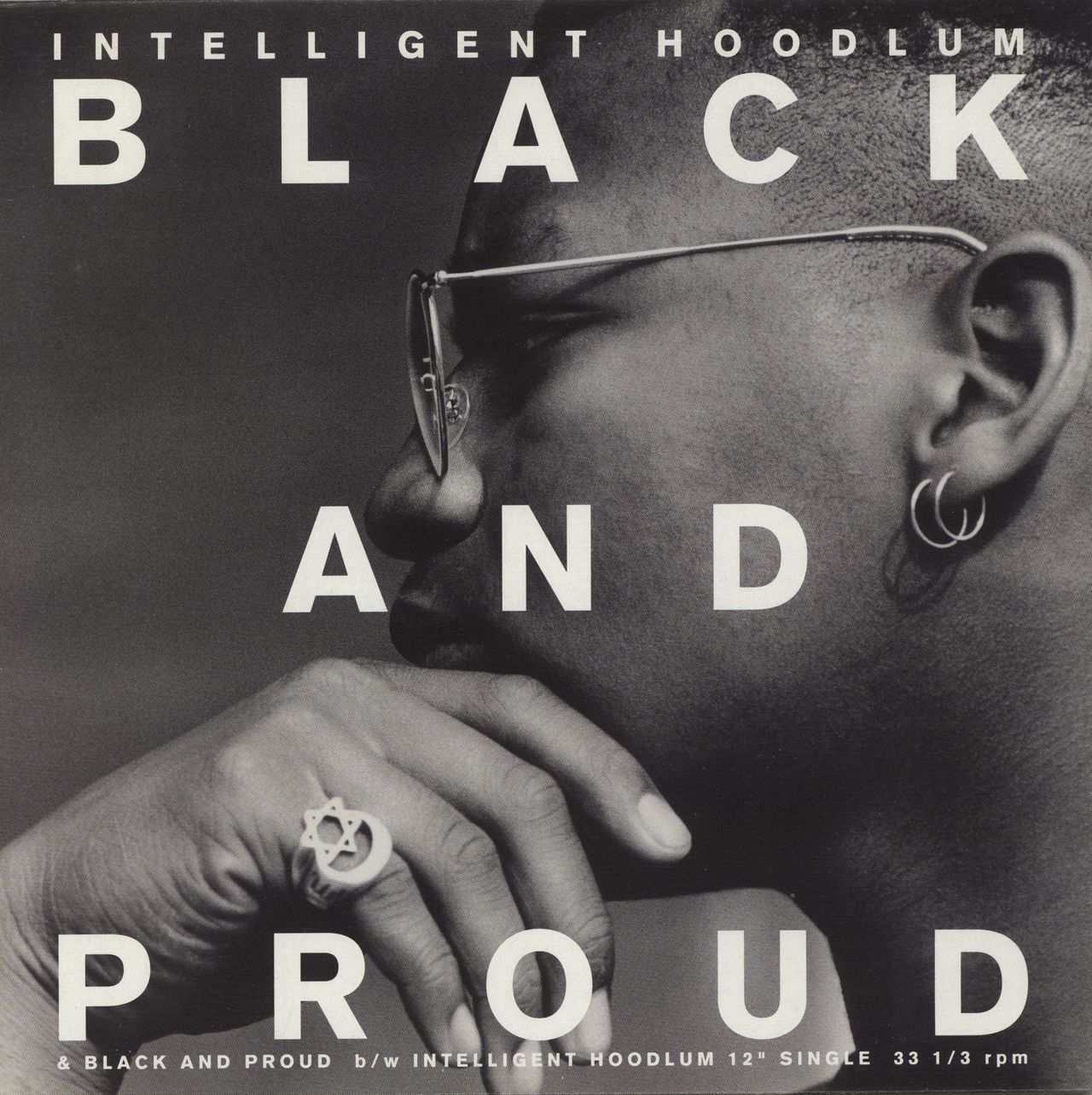 INTELLIGENT HOODLUM Black And Proud - Gold Promo Stamp (1990 US 3-track 12" vinyl single. Includes the A Cappella version and Intelligent Hoodlum. Housed in a lightly textured glossy picture sleeve with a gold promo stamp on the reverse. The sleeve shows some light edgewear, whilst the vinyl shows few signs of play; remaining in Excellent condition )