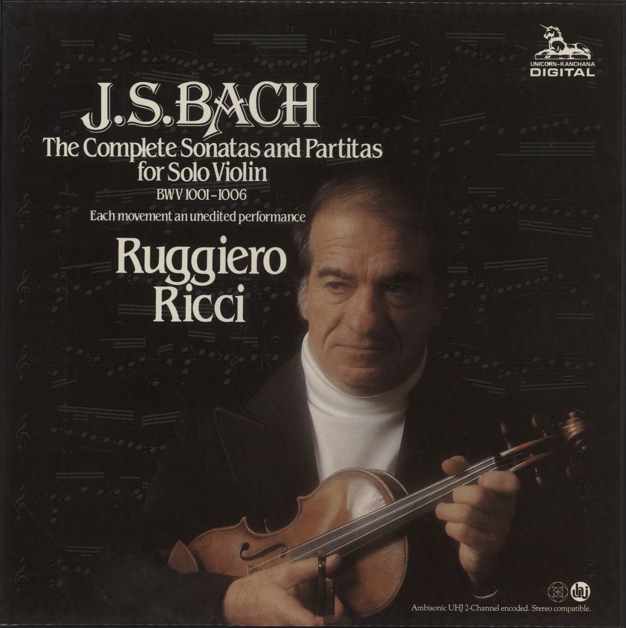 RUGGIERO RICCI Bach: The Complete Sonatas And Partitas For Solo Violin (1982 Dutch 27-track 3-LP vinyl set, picture box with fold-out sleevenotes insert. The box shows minimal wear with a little foxing to the insert, whilst the vinyl is Near Mint - superb DKP9010/12)