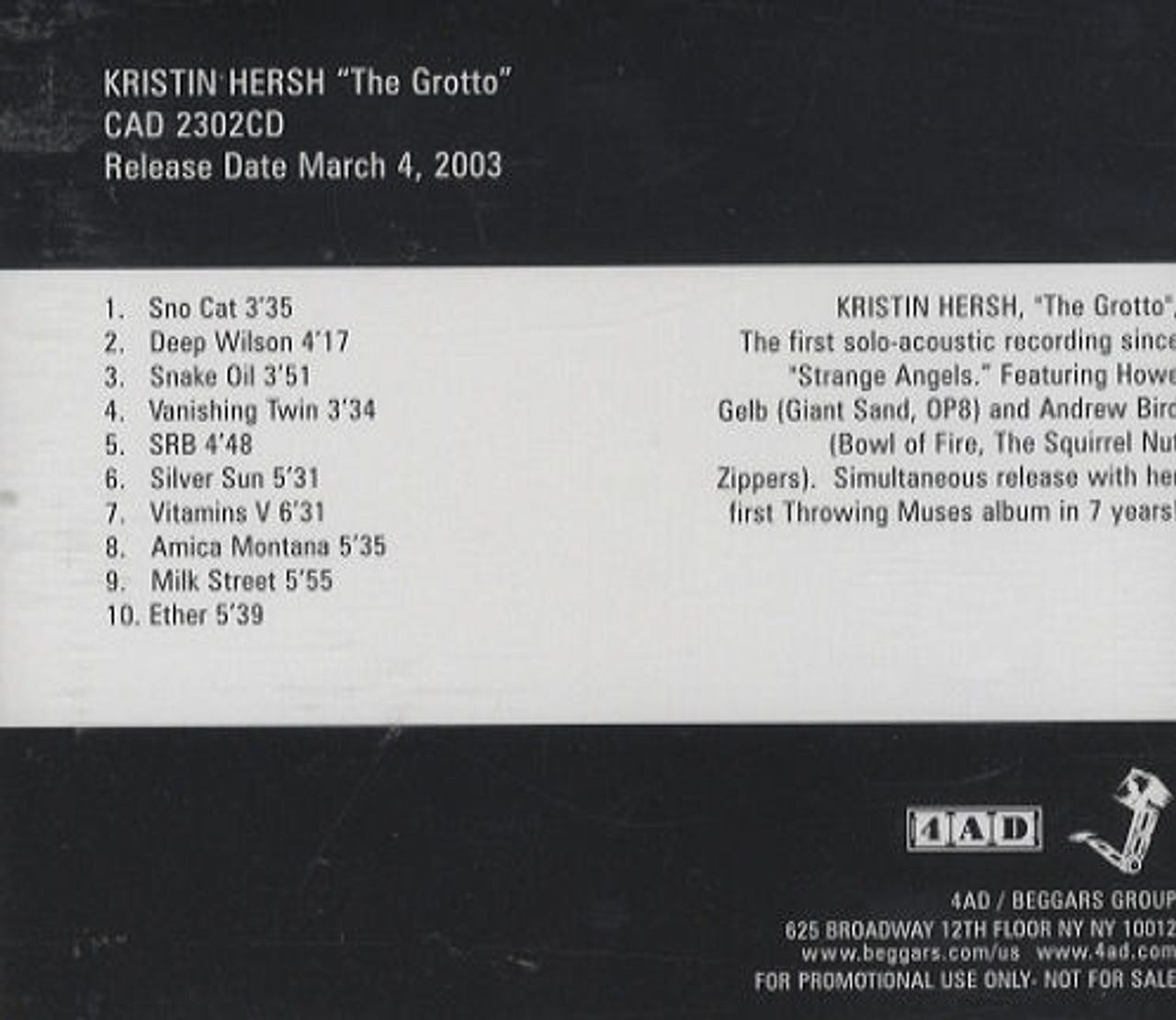 KRISTIN HERSH The Grotto (2003 US 10-track 4AD label advance