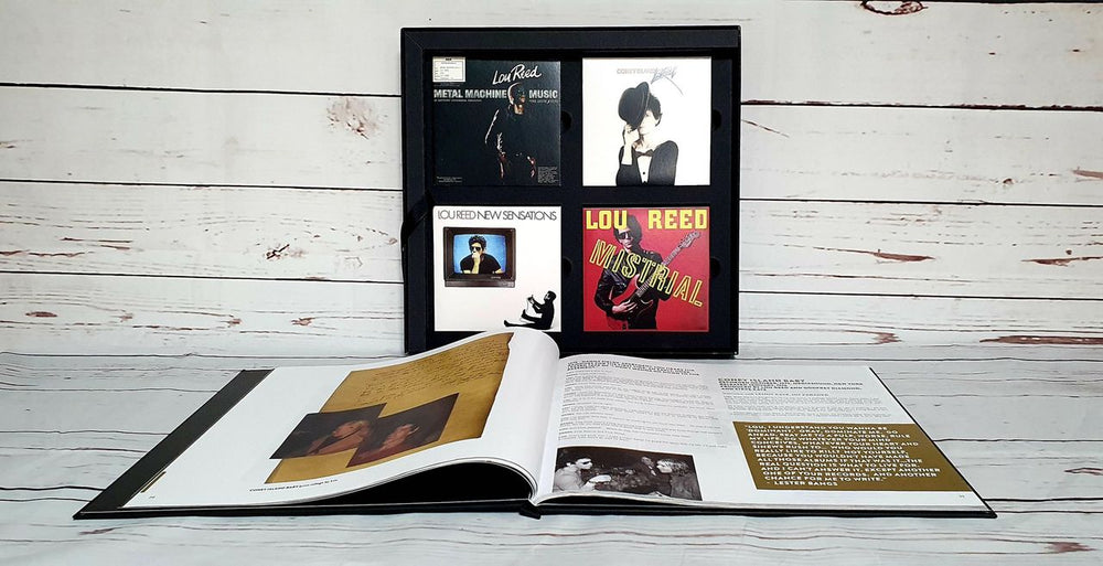 LOU REED The RCA & Arista Album Collection (2016 UK Deluxe Limited Edition digitally remastered 17-CD box set featuring Lou's solo albums from 1972-1986 - all newly remastered under Lou's direct personal supervision, a long-term project completed shortly before the artist's sad passing, at 71. Comprises the titles Lou Reed, Transformer, Berlin, Rock n Roll Animal [Live], Sally Can't Dance, Metal Machine Music, Coney Island Baby, Rock And Roll Heart, Street Hassle, Lou Reed Live Take No Prisoners [2-CD], The Bells, Growing Up In Public, The Blue Mask, Legendary Hearts, New Sensations and Mistrial. Complete with an 80-page hardback book featuring memorabilia from Lou's personal archives, rarely seen photographs & artwork and interviews with Lou plus five 8" x 10" prints and a facsimile reproduction of a rare RCA promotional poster, all housed within a 13" x 13" x 2" two-piece boxset!)