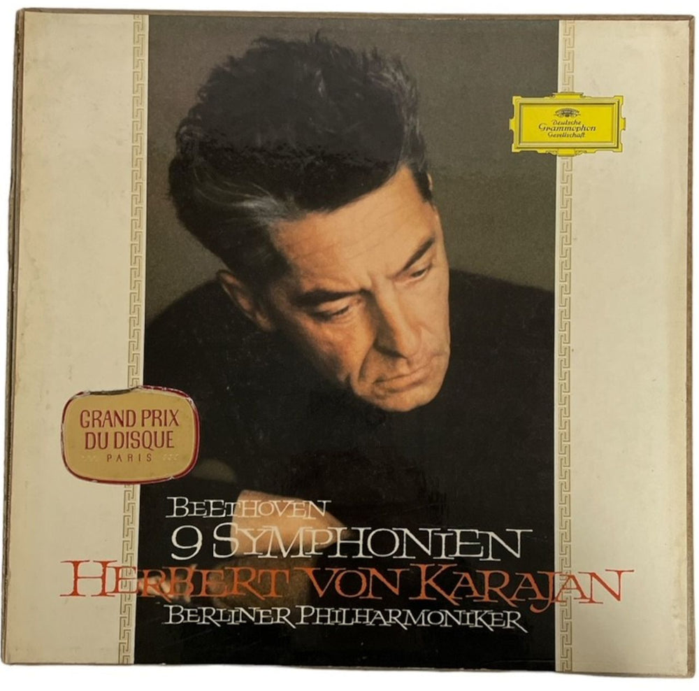 THE BERLIN PHILHARMONIC ORCHESTRA conducted by HERBERT VON KARAJAN Beethoven: 9 Symphonien (1965 German Stereo EIGHT LP box set, generally considered one of the definitive collections of Beethoven symphonies & also featuring Gundula Janowitz [Soprano], Hilde Rössel-Majdan [Mezzo-Soprano], Waldemar Knentt [Tenor], Walter Berry [Baritone] & the Wiener Singverein under the direction of Reinhold Schmid, complete with full size twenty two page illustrated libretto in English, allhoused in a front pasted picture box. Not surprisingly, the box shows degree of shelfwear with a little scuffing and foxing on the back and a bit of discolouration where the internal staples have rusted, but remains unsplit & the vinyl remains in Near Mint condition SKL101~8)