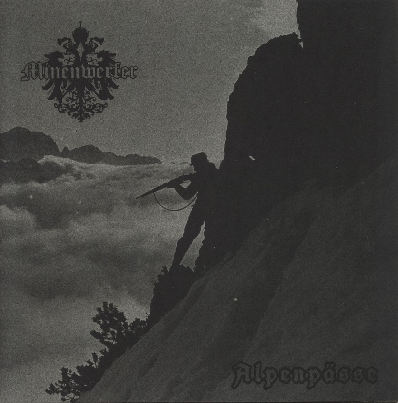 MINENWERFER Alpenpässe (2019 German 7-track double vinyl LP. US black metal band who occasionally sing in German. Matt picture sleeve with lyrics printed on the inside. The sleeve shows just a very minor crease to the top right corner and the vinyl are in Near Mint condition PTF182)