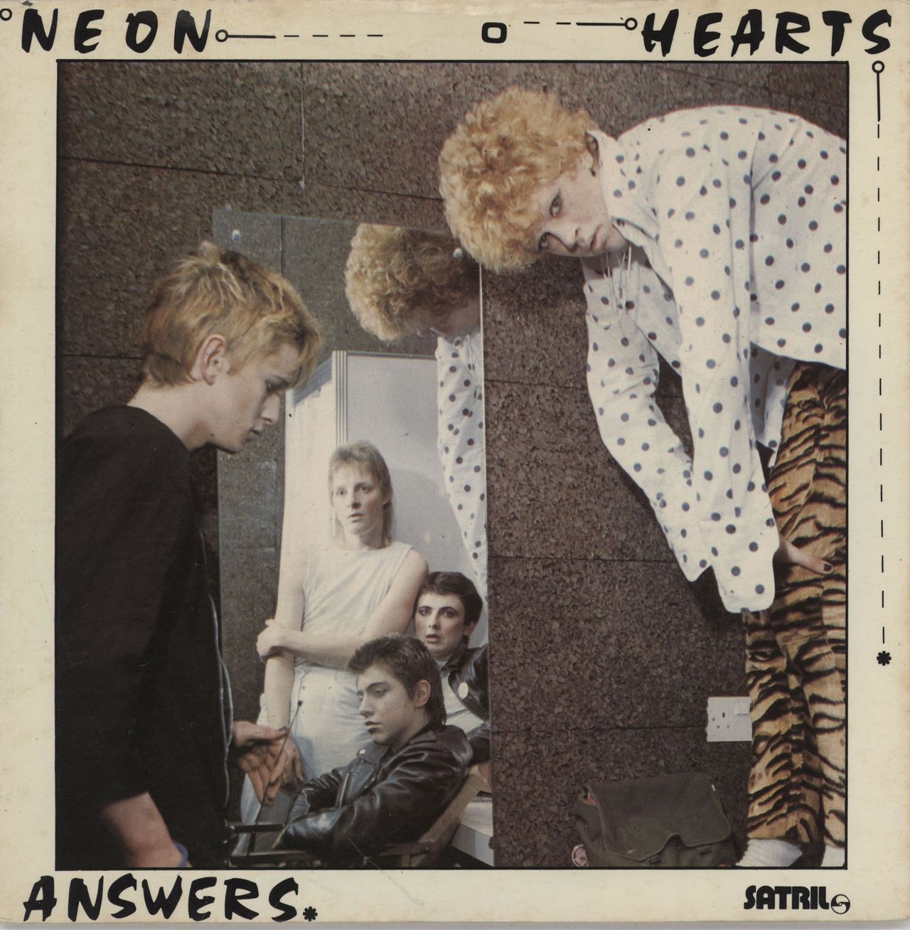 NEON HEARTS Answers (British Punk 1979 UK solid centre 7" vinyl single, also including 'Armchair Thriller'. The flipback picture sleeve shows a little shelfwear to the edges and past store price written on the back of the opening edge while thevinyl remains in EX condition SAT133)