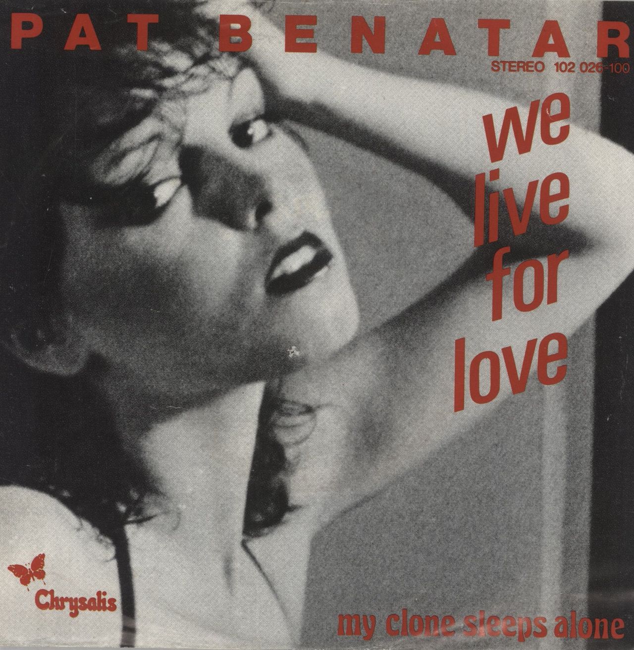 PAT BENATAR We Live For Love (1980 German wide centered 7" vinyl single, also including My Clone Sleeps Alone, picture sleeve. The sleeve shows light ear with the vinyl appearing barely played CHS2403)