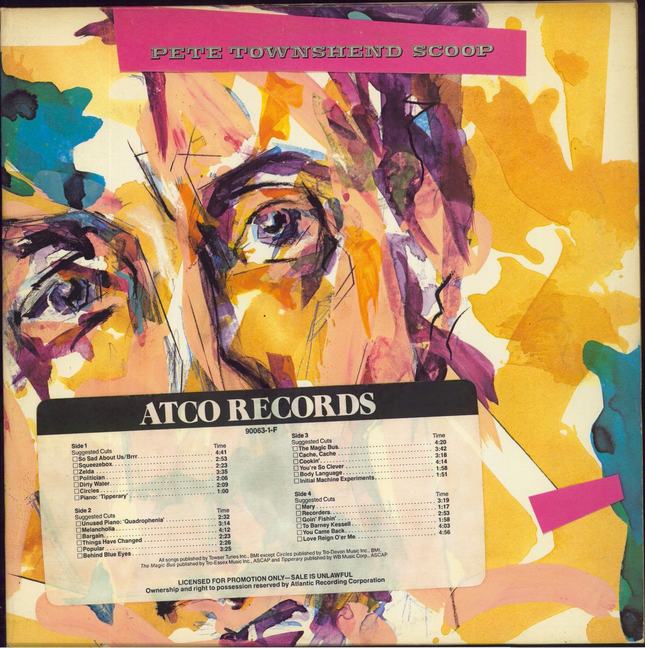 PETE TOWNSHEND Scoop (1983 US Atco 25-track vinyl double LP, housed in a gatefold picture sleeve with radio timing strip on the front and gold promotional stamp on the reverse plus illustrated credits inners. The sleeve shows some light edgewear and the inners have a couple of seam splits, whilst the vinyl looks barely played)