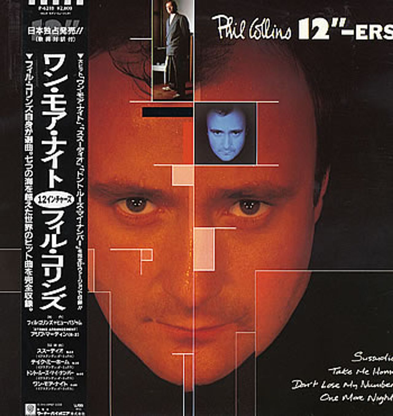 PHIL COLLINS 12"-Ers (1985 Japanese only 4-track 12" including Sussudio Extended Mix, Take Me Home Extended Mix, Don't Lose My Number Extended Mix & One More Night Extended Mix, picture sleeve with lyric insert and obi-strip P-6218)