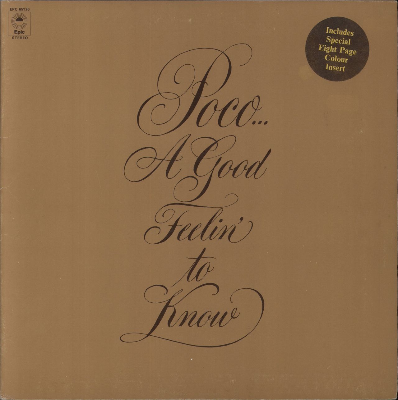 POCO A Good Feelin' To Know (1972 UK 9-track stereo LP, superb hype-stickered textured gatefold picture sleeve with integral eight page photo/lyric booklet. The sleeve shows just a little shelfwear & the vinyl is Excellent with little sign ofplay EPC65126)