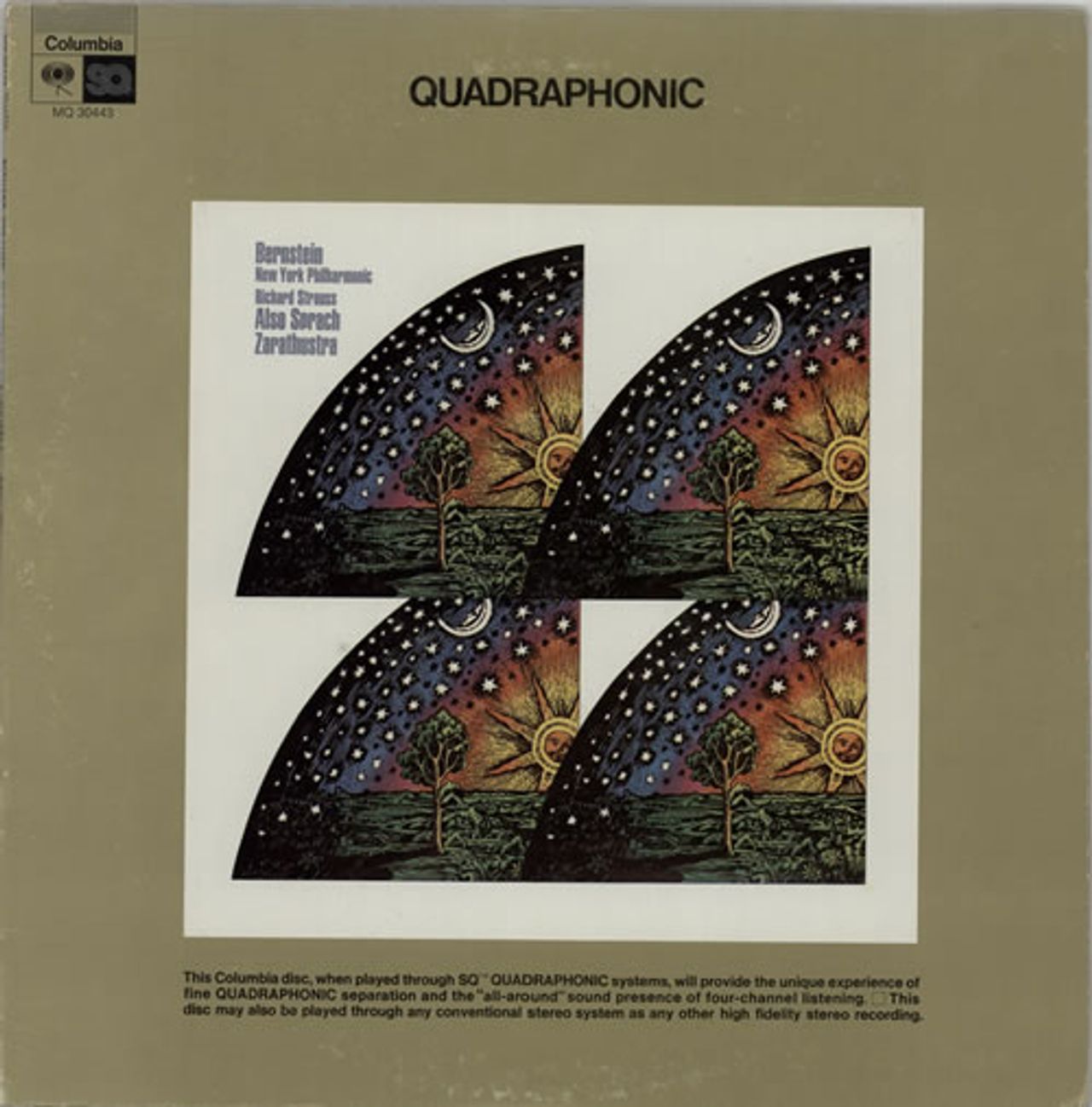 THE NEW YORK PHILHARMONIC ORCHESTRA conducted by LEONARD BERNSTEIN Also Sprach Zarathustra (1971 US SQ Quadraphonic LP, fully compatible with conventional stereo systems, pasted picture sleeve with company inner. The sleeve is Excellent with little shelf wear & the vinyl is clean & in Excellent condition with minimal play MQ30443)