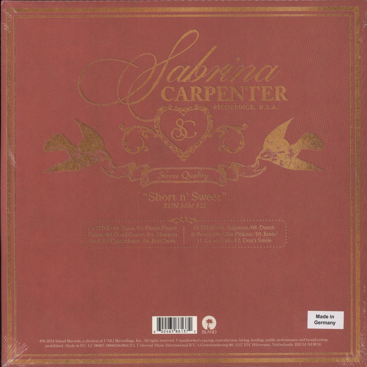 SABRINA CARPENTER Short N' Sweet (2024 UK/EU limited edition Artist Webstore exclusive 12-track LP pressed on 'Vintage Bottle' Green Vinyl - Sabrina's sixth studio album showcases the scintillating spirit of the pocket-sized popstar with a larger-than-life artistic presence; including the singles Espresso, Please Please Please, Taste and Juno. Complete with a die-cut inner, postcard and double-sided insert, the gatefold picture sleeve has alternate artwork to the front & back and remains factory sealed)