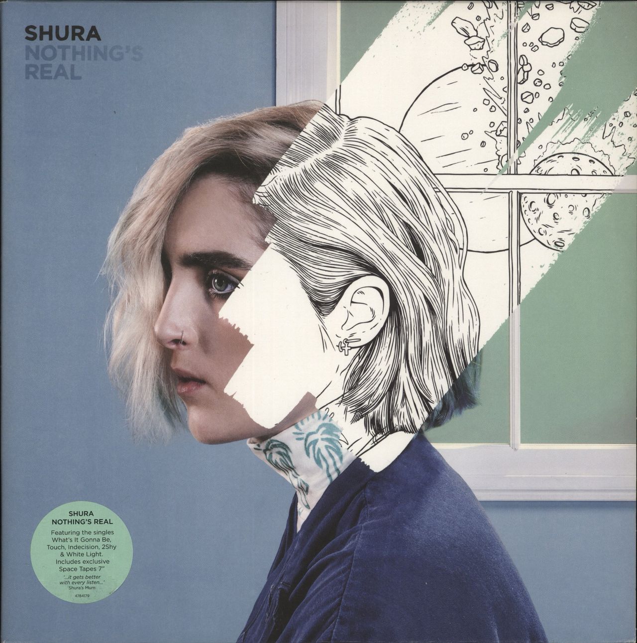 SHURA Nothing's Real (2016 UK 13-track double vinyl LP, the debut studio album by English singer including the singles Touch, What's It Gonna Be?, NOthing's Real and 311215, housed in the gatefold picture sleeve with lyric inners and Bonus7" of the Space Tapes, also with circular hype-sticker attached to the front. The sleeve shows minimal wear, the inners remain Near Mint and the vinyl remains in Near Mint condition with barely any signs of play visible)