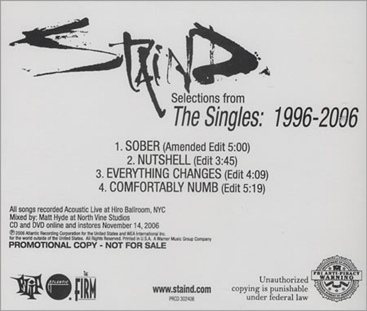 STAIND Selections from The Singles 1996-2006 (2006 US 4-track