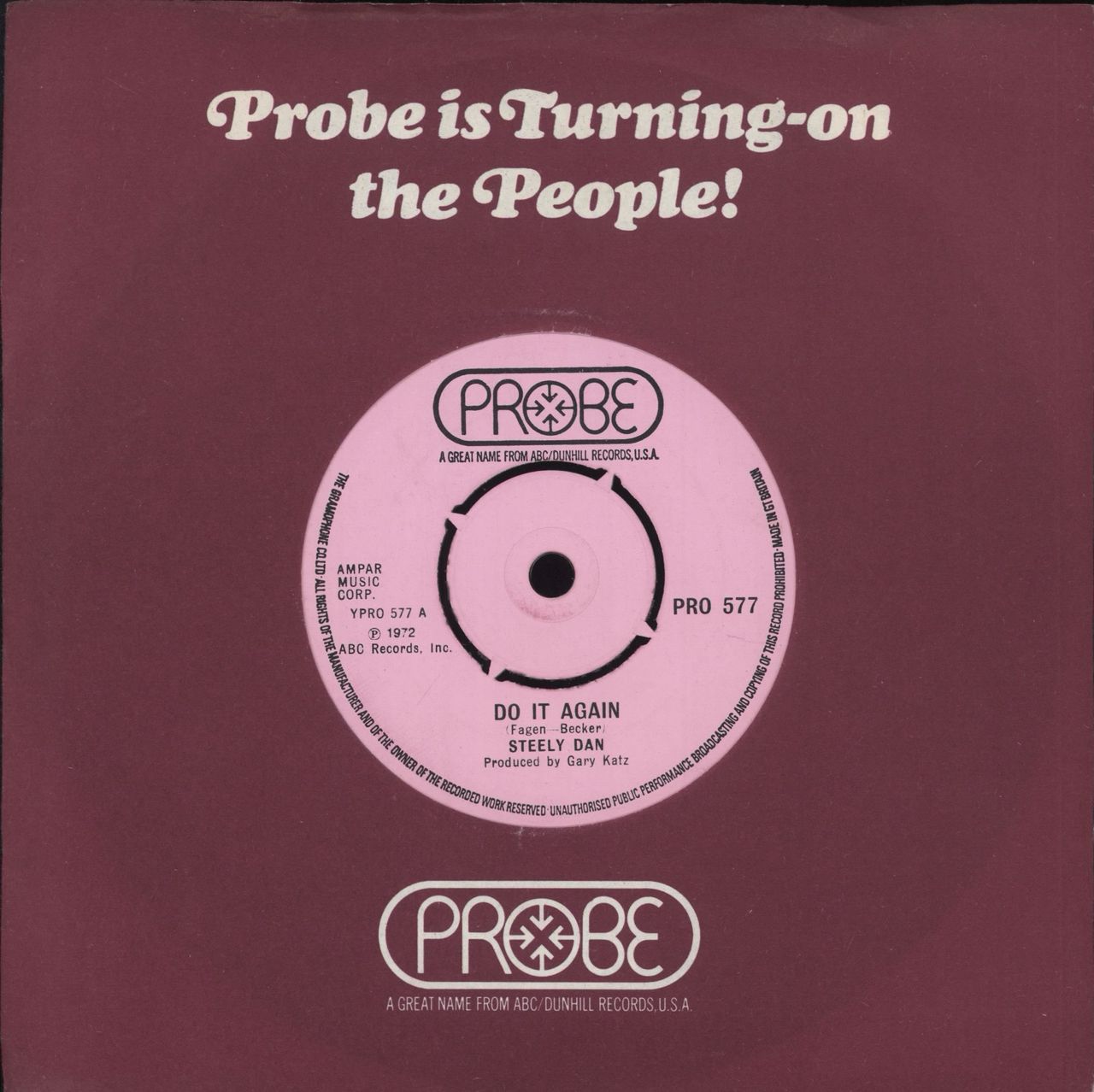 STEELY DAN Do It Again (Scarce 1973 UK 7" vinyl single with an intact four prong centre, also including Fire In The Hole. Issued in a Probe company die-cut paper sleeve, the vinyl appears barely played PRO577)
