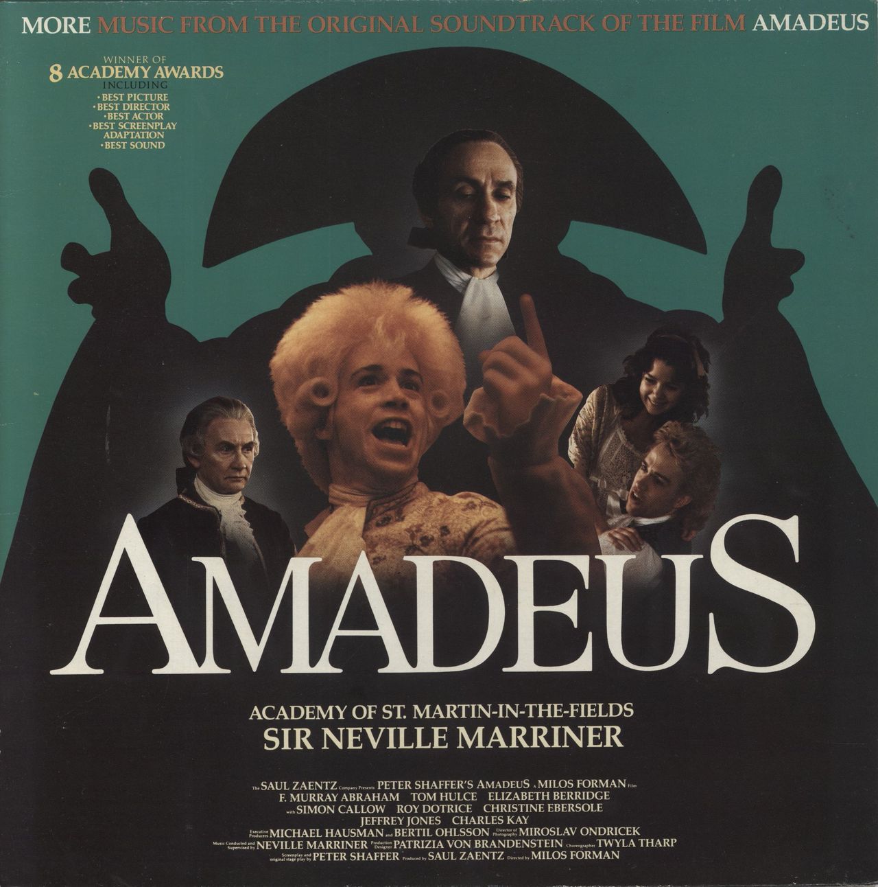 THE ACADEMY OF ST. MARTIN-IN-THE-FIELDS conducted by NEVILLE MARRINER Amadeus - More Music from the Original Soundtrack (1985 UK 10-track LP featuring more music by Mozart featured in the 1984 film, glossy gatefold picture sleeve with extensive liner notes. The sleeve shows mnimal wear and the vinyl is Near Mint LONLP7)