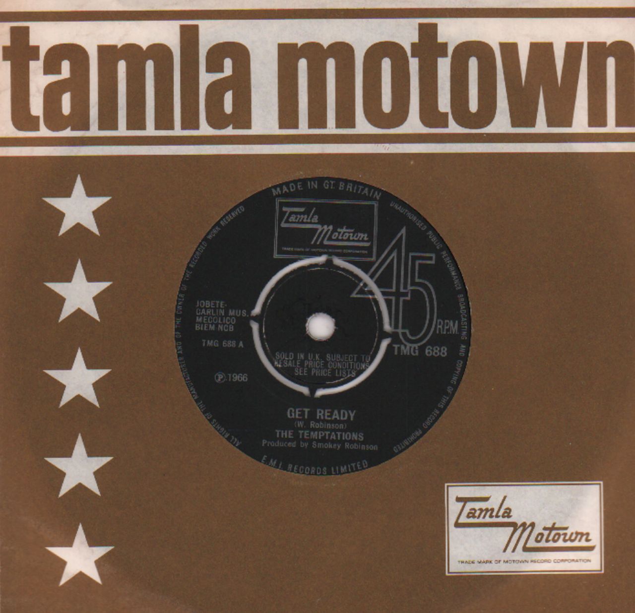 THE TEMPTATIONS Get Ready (1969 UK 7" vinyl single with 'Sold In The UK' label text and intact four prong centre, also including My Girl, Tamla Motown company die cut paper sleeve TMG688)