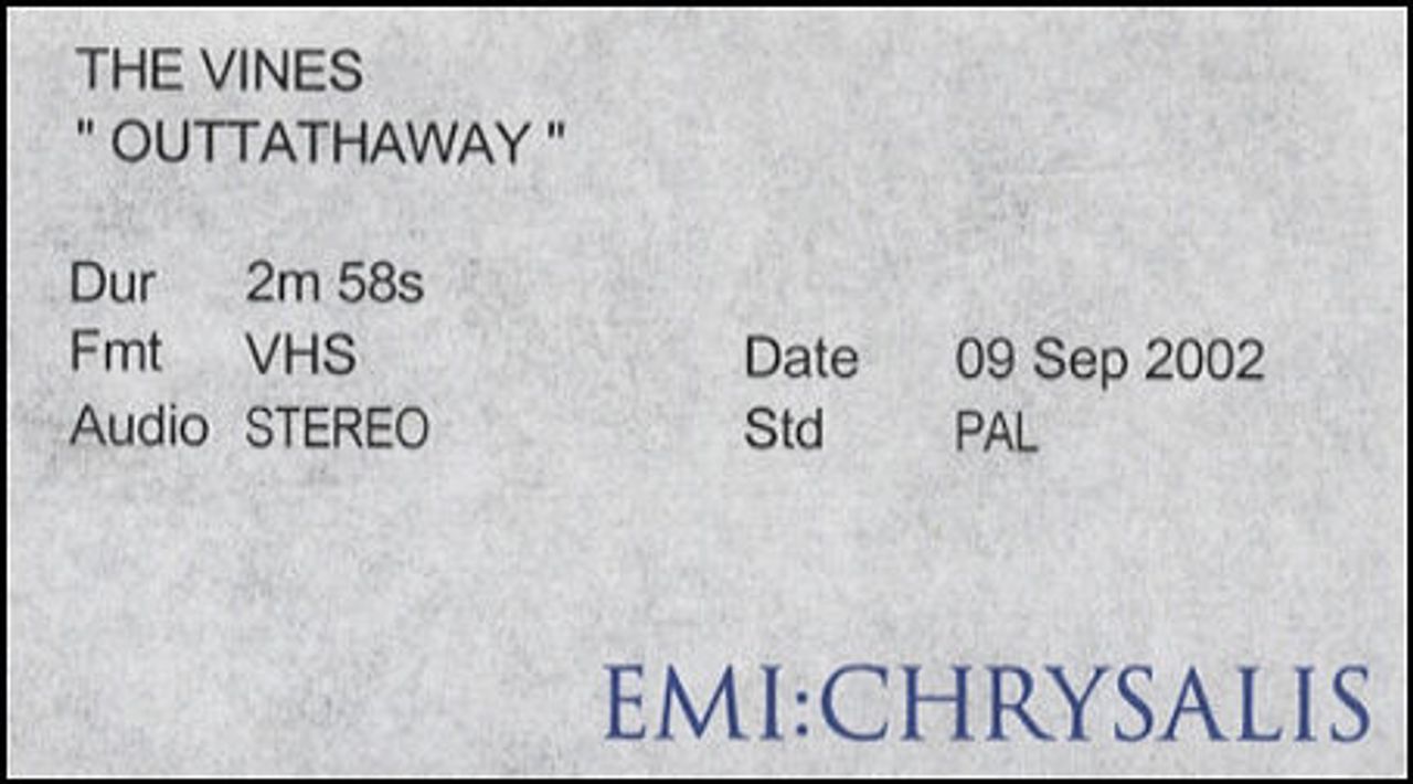 THE VINES Outtathaway (2002 UK 1-track promo PAL video with running time 2' 58")