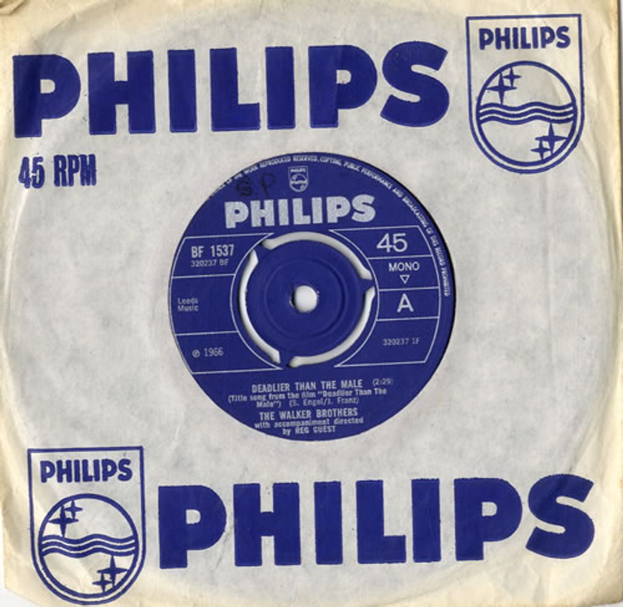 THE WALKER BROTHERS Deadlier Than The Male (1966 UK 7" vinyl single with intact three prong centre, also featuring perhaps the Brothers' finest moment, Archangel; Philips company die cut paper sleeve BF1537)