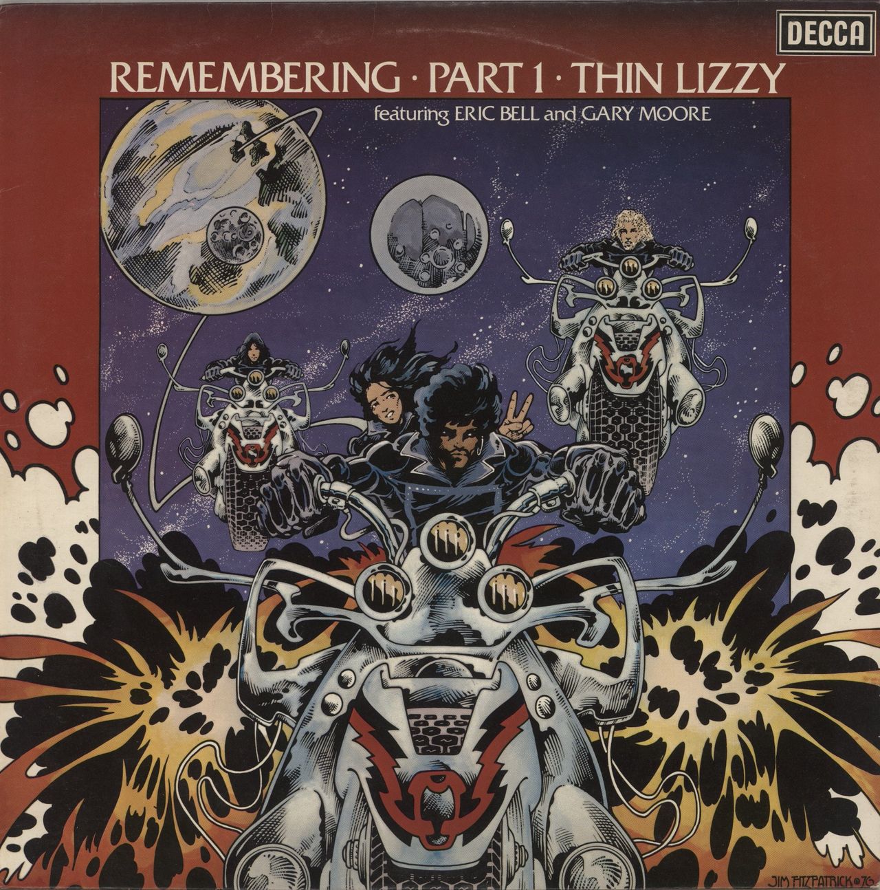 THIN LIZZY Remembering Part 1 (1976 UK 10-track compilation LP featuring Eric Bell & Gary Moore on tracks recorded between 1971 & 1974, including the never before released on album 'Sitamoia', great picture sleeve designed by Jim Fitzpatrick bringing the artwork from the Jailbreak album to mind. The sleeve has some light edge scuffing and ringwear, whilst the vinyl appears barely played SKL5249)