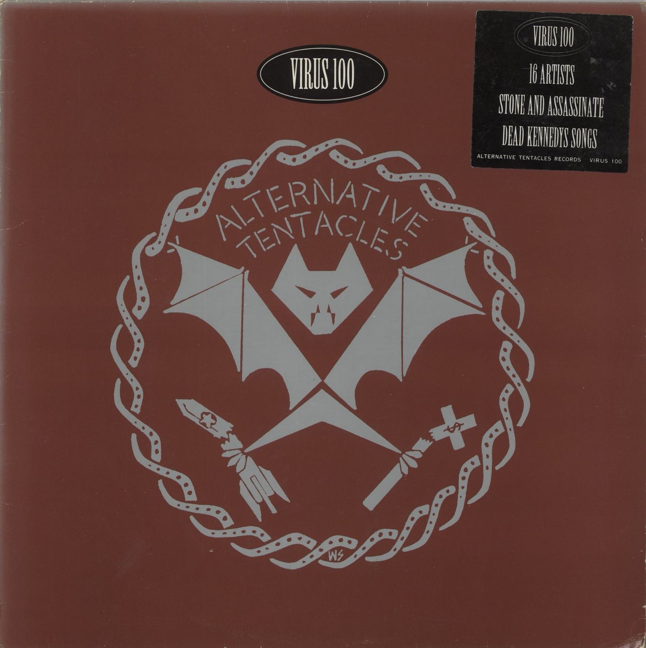 VARIOUS-ROCK & METAL Virus 100 (1992 UK 16-track compilation vinyl LP featuring a collection of artists from across the rock and metal spectrum including Faith No More, Napalm Death, Sepultura and L7 amongst others. Housed in a hype-stickeredpicture sleeve with illustrated credits inner. The sleeve is Very Good and has some edge wear and fading, the vinyl shows a few light cosmetic paper scuffs, not impacting play VIRUS100)