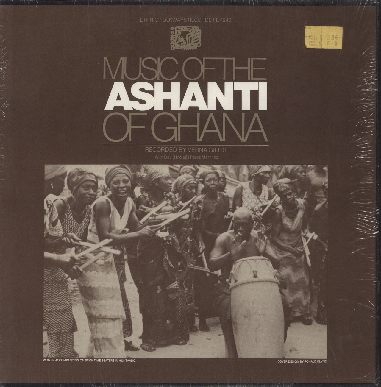 VARIOUS-WORLD MUSIC Music Of The Ashanti Of Ghana (1979 US 8-track vinyl LP. A compilation from the Ashanti Of Ghana. Including Kete Children's Group, Manhyia Tete Nwomkoro, Sikyi and more. Recorded by American singer, musician, ethnomusicologist and producer - Verna Gillis. Texured picture sleeve with liner notes insert. The sleeve remains in the open shrink with a vintage price sticker and shwos minimal shelfwear. The vinyl reveals minimal signs of play FE4240 )