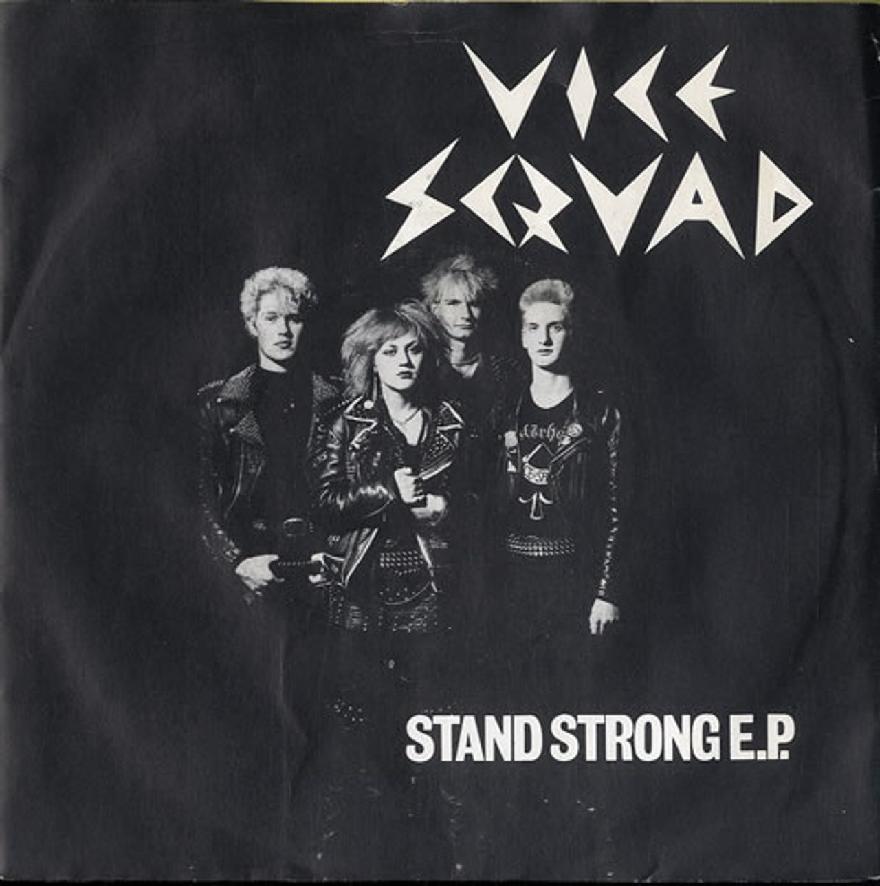 VICE SQUAD Stand Strong EP (1982 UK 4-track 7" vinyl EP with intact four prong centre, includes 'Stand Strong Stand Proud', 'Tomorrow's Soldier', 'Rock 'N' Roll Massacre' and 'Darkest Hour', picture sleeve with the lyrics for all four songs printed on the reverse Z30)